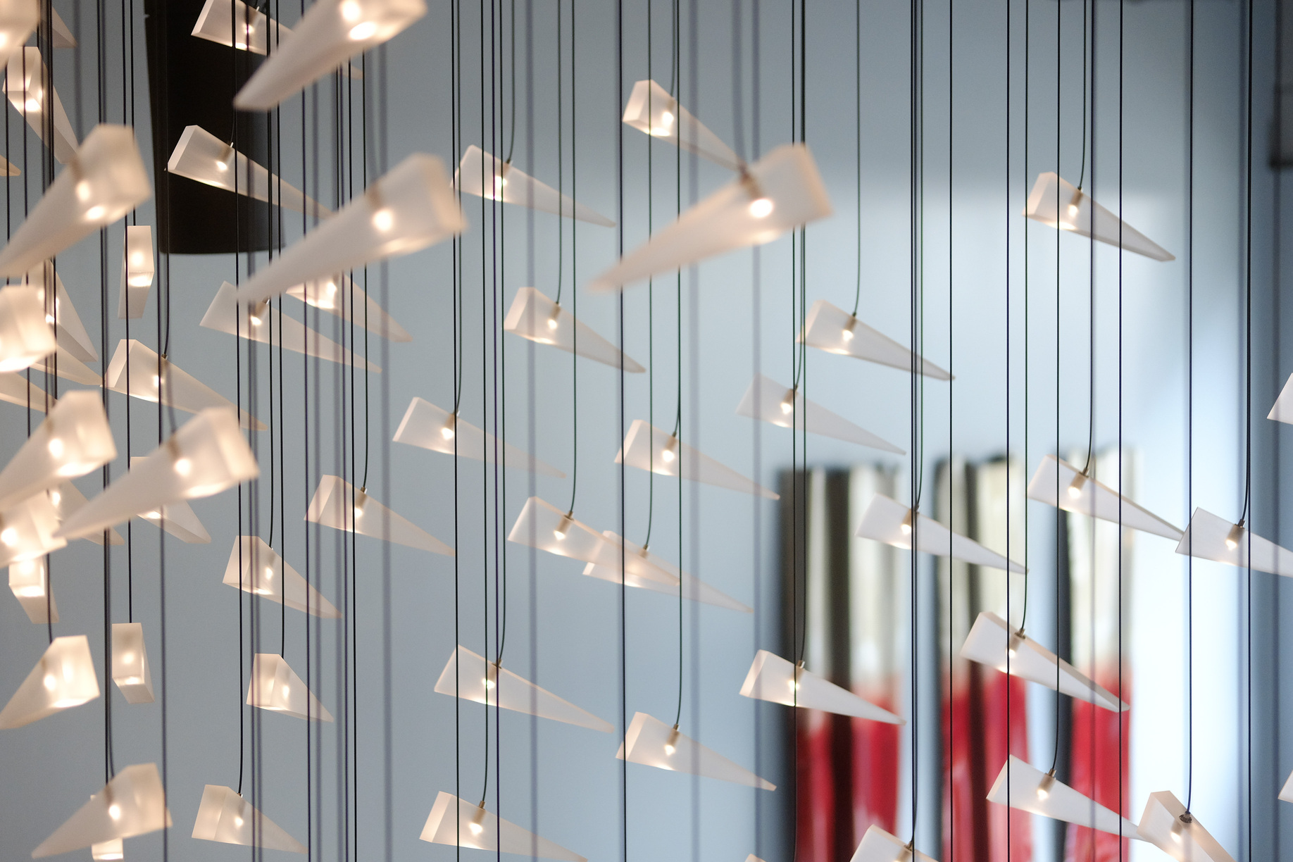Set in the main lobby of a Capital Hill residential project, this nautically-inspired Loci installation evokes the swirling motion of a school of fish. Like all Loci fiberoptic installations, the unique sculptural form is tailored specifically to enhance its’ particular environment.